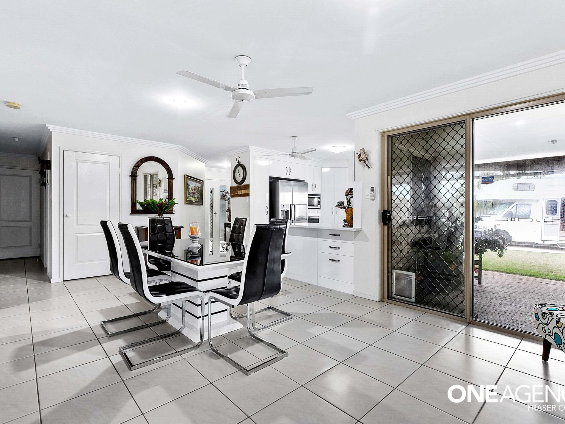 • Ceiling fans and security screens throughout